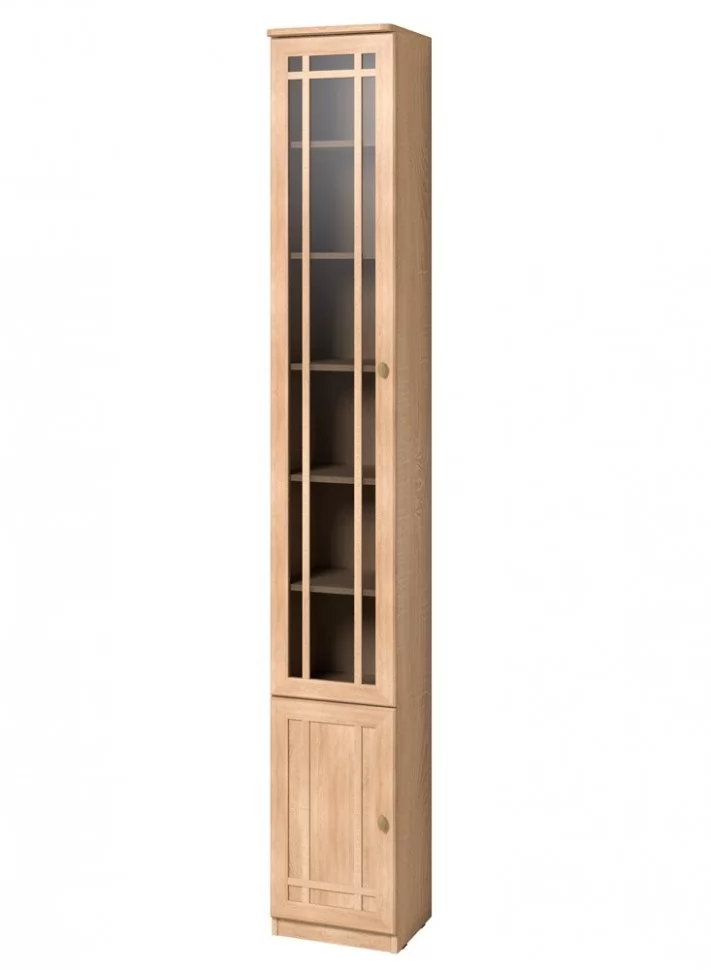 Высокий книжный шкаф можно установить в комнату с высотой потолка не менее 240 см. Высота полок во всех шкафах для книг регулируется, для этого только необходимо установить полкодержатели в подготовленные отверстия. Это позволит поставить на полки книги и альбомы разного формата. Тонированное стекло защищает книги от вредного воздействия солнечных лучей и убережет их от пожелтения. Стеклянный фасад не перенавешивается на левую сторону (петли слева), для этого выбирайте Sherlock 311 Шкаф для книг. Книжный шкаф обязательно крепится к стене за подвесы и межсекционной стяжкой с другими шкафами в наборе. Библиотека выпускается без выборки под плинтус, чтобы каждый мог прирезать плинтус индивидуально. В противном случае остаются неаккуратные зазоры между модулем и стеной.