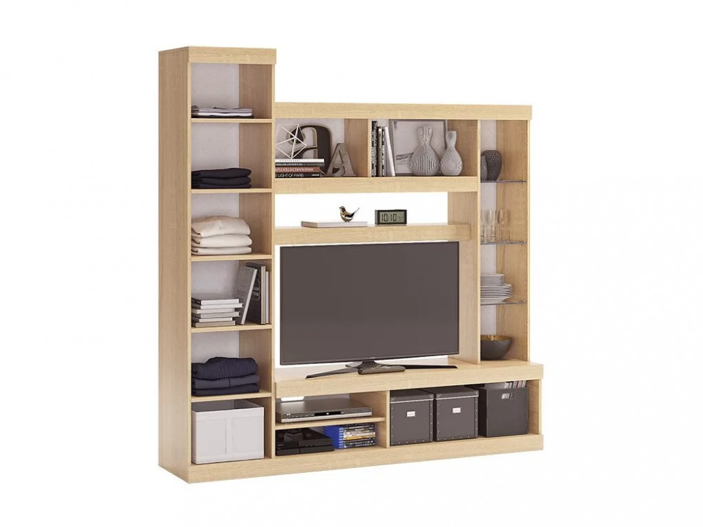 Гостиная СОЛО (ш2700*г500*в2100мм), ЛДСП Белый / ЛДСП Ателье светлое
