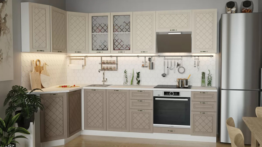 Кухонный угловой гарнитур арт.1, 1200x1400 мм, Фаска/Тальк/Обсидиан