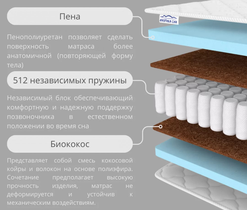Кокосовое волокно, Пенополиуретан, Независимый пружинный блок