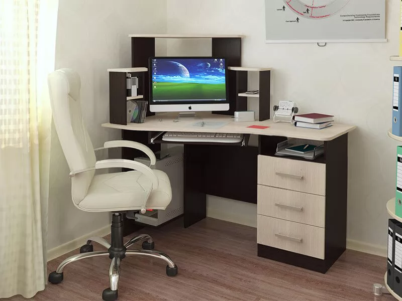 а также угловую настройку и тумбу с выдвижным ящиками для хранения необходимых в работе или учебе вещей,