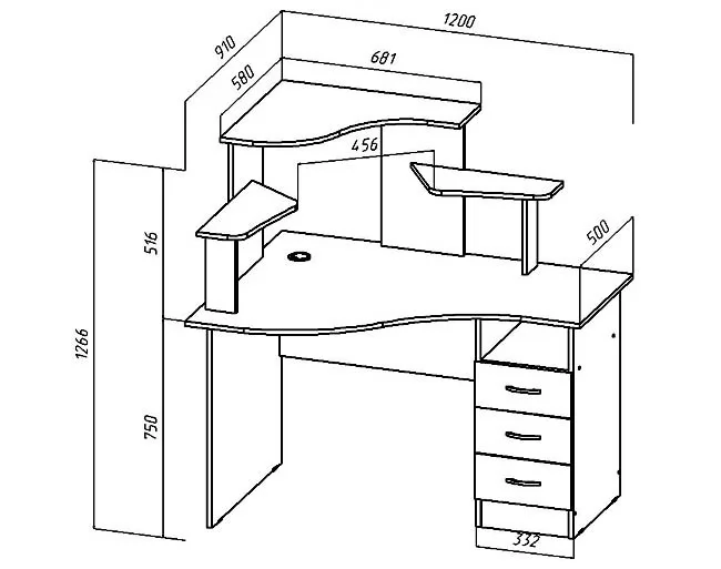 ЛДСП толщиной 16 мм. Кромка ПВХ, направляющие полного выдвижения.
