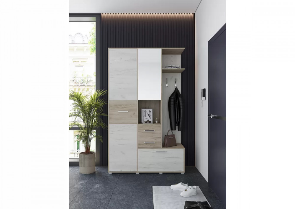 Прихожая «Танго-1» - это компактный и стильный вариант мебели для небольшой прихожей. Она включает в себя все необходимые элементы для хранения одежды, аксессуаров и обуви.
