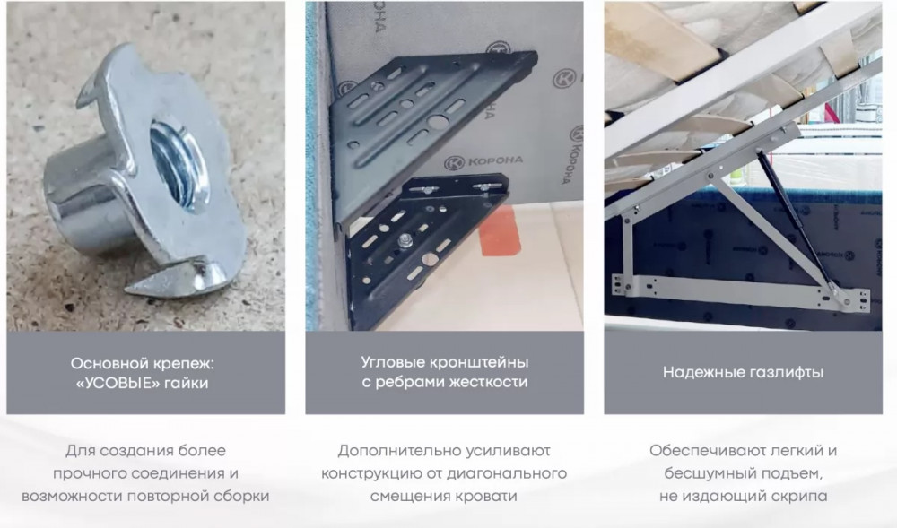 Имеет полный набор доступных опций: комплектация подъёмным механизмом, настилом ЛХДФ, ортопедическим основанием.