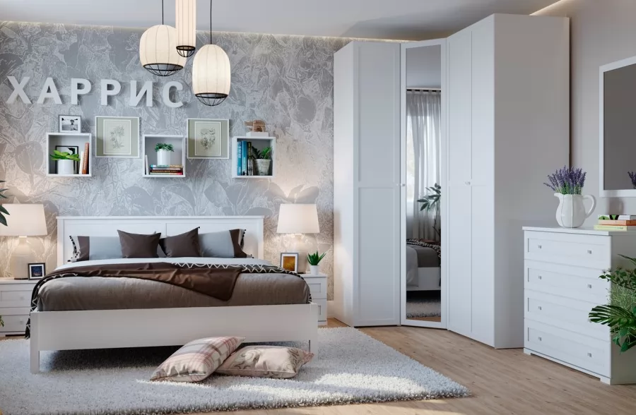 Спальня ХАРРИС в стиле неоклассика сочетает в себе современные тенденции и классические приемы. Универсальный дизайн, симметрия каждого элемента мебели будут отлично сочетаться с любым интерьером. Неоклассика — стиль, который всегда актуален, является признаком хорошего вкуса и лаконичности. Белый цвет мебели визуально увеличивает пространство, что отлично подходит даже для небольших комнат. Кроме абсолютного удобства, спальня ХАРРИС отличается простотой в сборке, надёжностью в использовании и долговечностью.