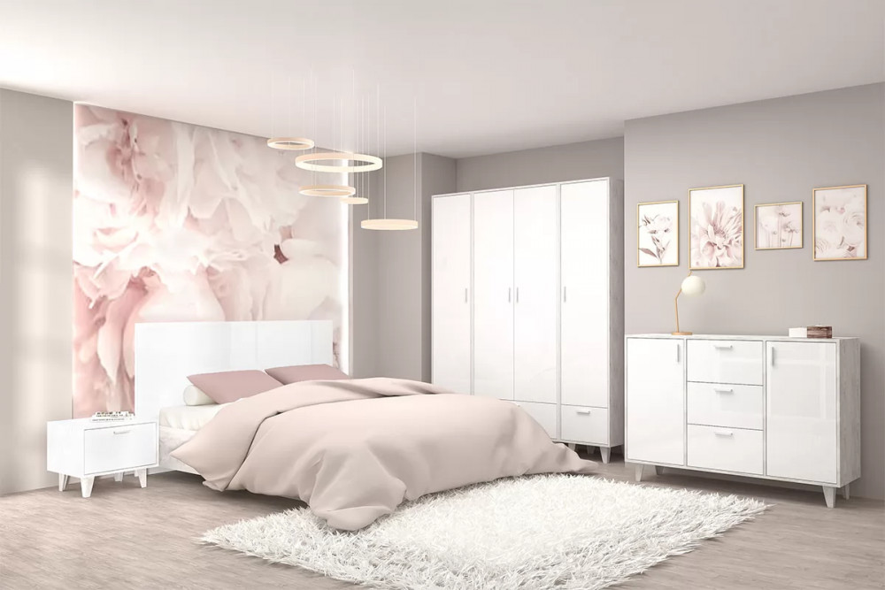 Кровать Эго арт. 031, 1600*2000 мм, бетон светлый/белый глянец 1 шт